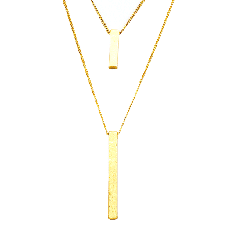Nothing brings instant class to an outfit like this minimalist bar necklace. A clean sleek look featuring vertical pendants hanging from a sleek gold chain. When it comes to accessorizing, sometimes the chicest option is to keep things to a bare minimum.