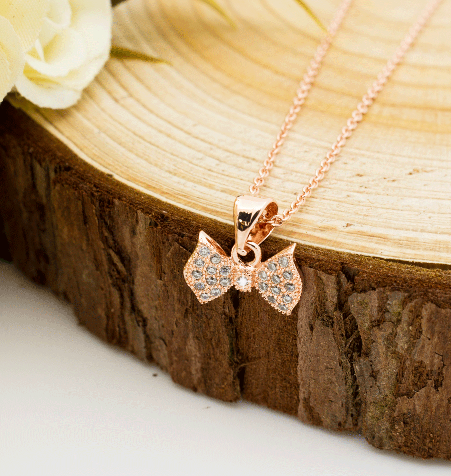Bow: 0.6cm x 1cmNecklace: 19cmChain Extension: 5.5cm